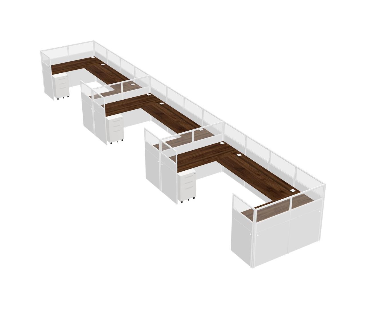 Columbia Walnut U-shaped Panel System For 3 Person + Metal Mobile Drawers For 3 User(s)