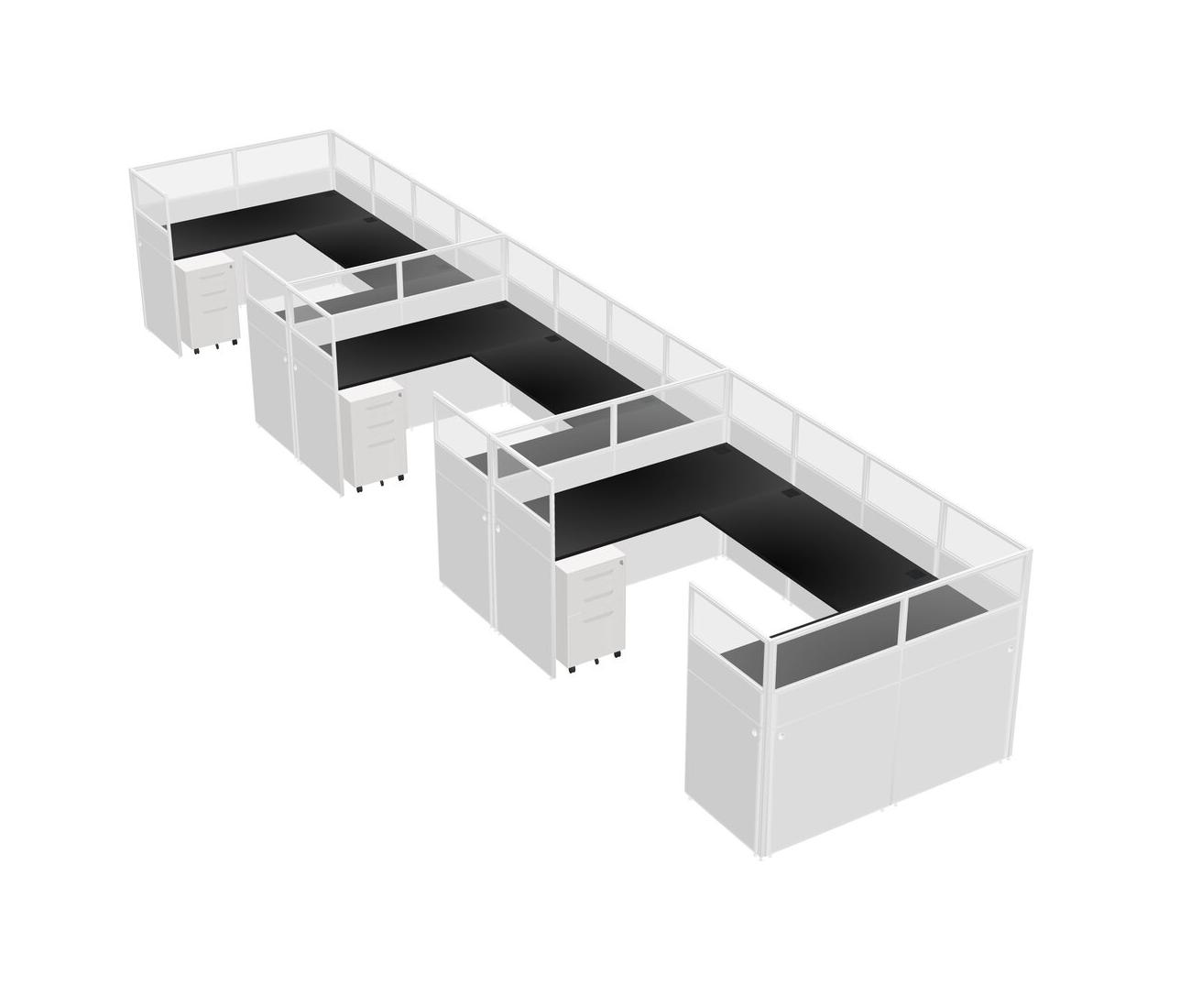 Black U-shaped Panel System For 3 Person + Metal Mobile Drawers For 3 User(s)