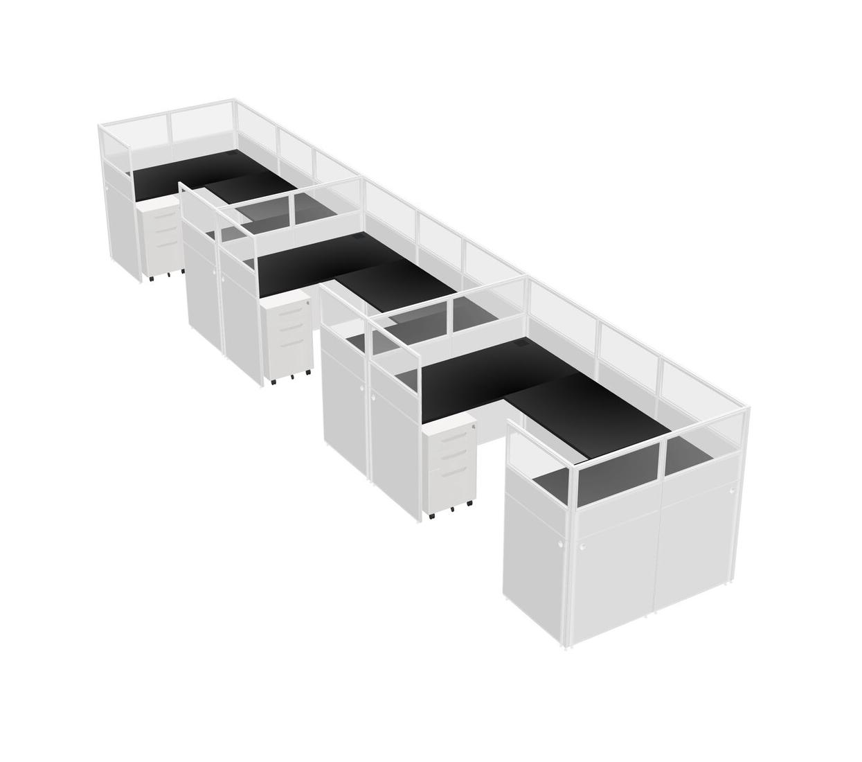 Black U-shaped Panel System For 3 Person + Metal Mobile Drawers For 3 User(s)