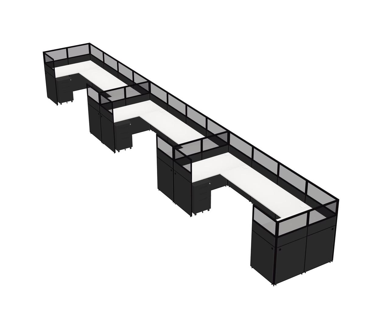 White U-shaped Panel System For 3 Person + Metal Mobile Drawers For 3 User(s)