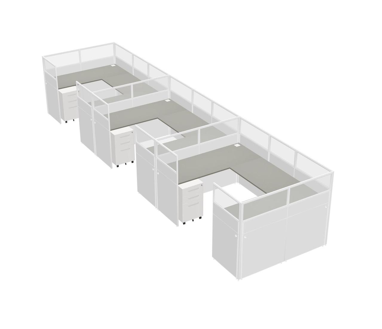 Grey Shadows U-shaped Panel System For 3 Person + Metal Mobile Drawers For 3 User(s)