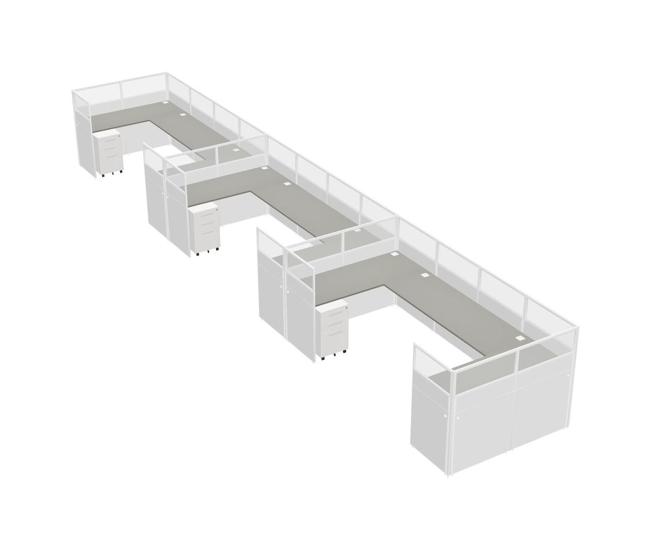 Grey Shadows U-shaped Panel System For 3 Person + Metal Mobile Drawers For 3 User(s)