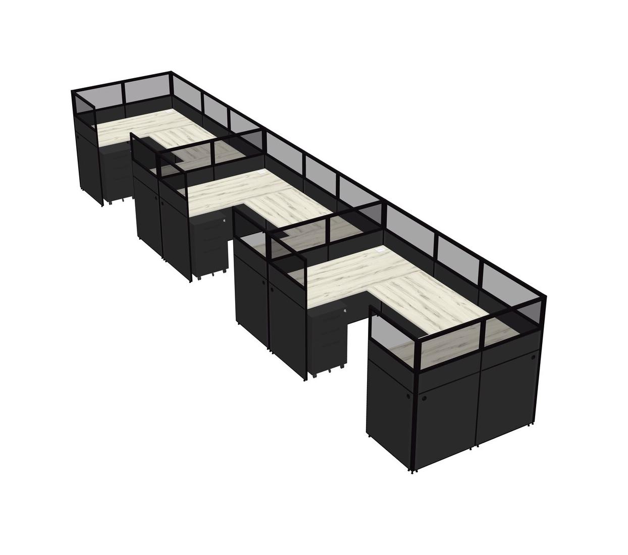 Heinne Holz U-shaped Panel System For 3 Person + Metal Mobile Drawers For 3 User(s)