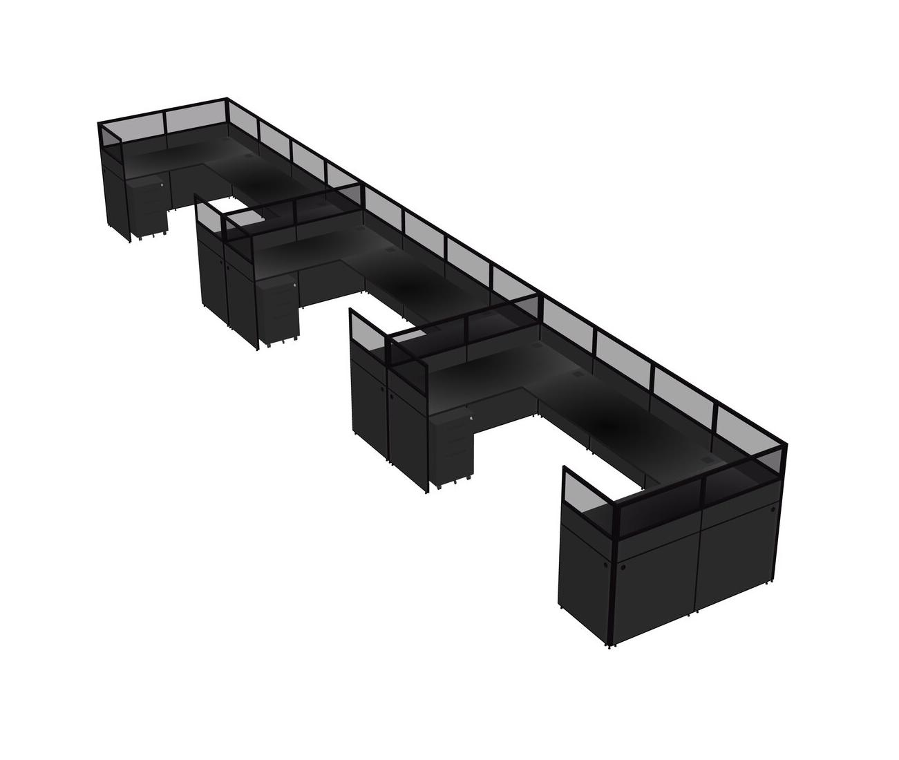 Black U-shaped Panel System For 3 Person + Metal Mobile Drawers For 3 User(s)