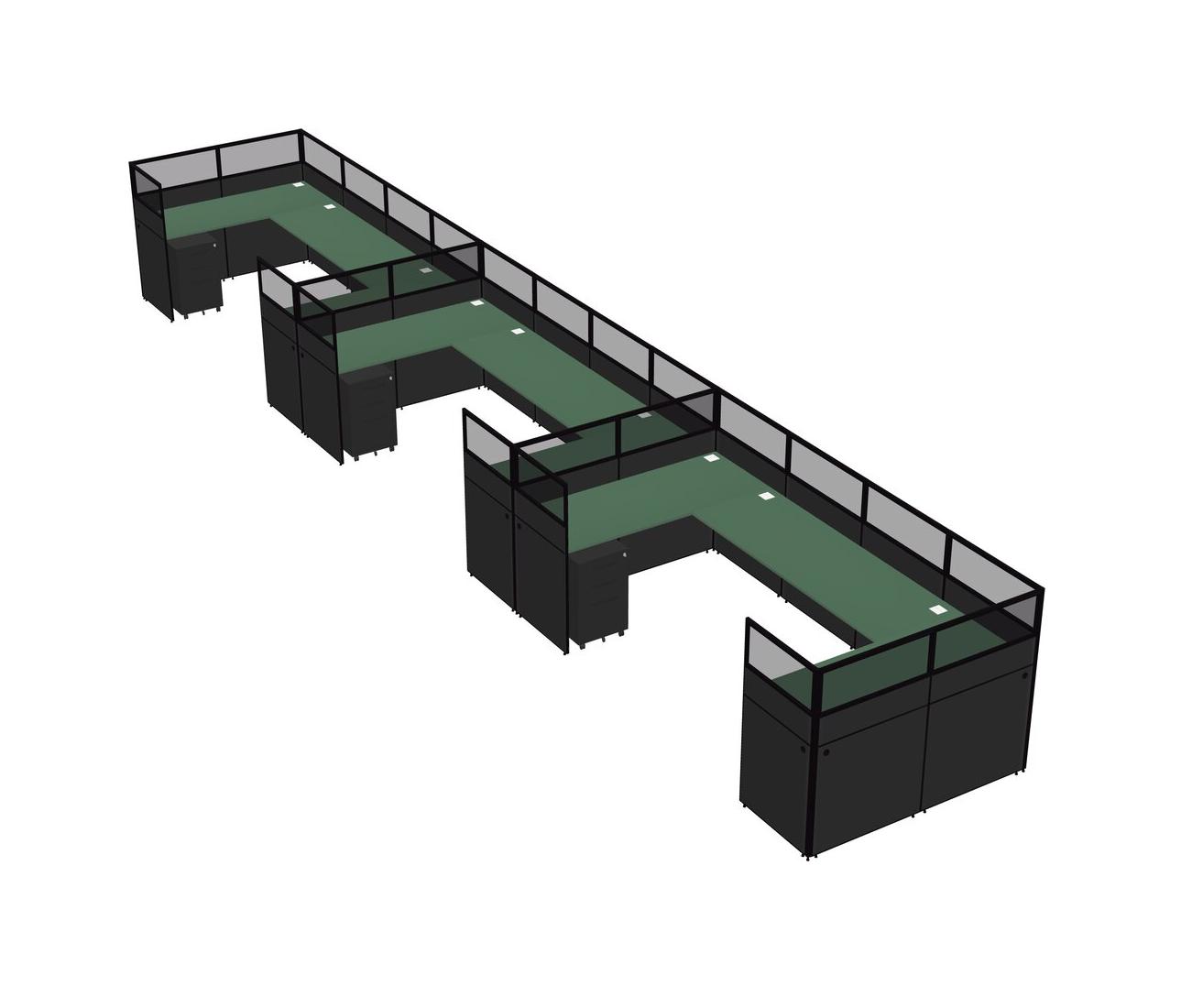 Green U-shaped Panel System For 3 Person + Metal Mobile Drawers For 3 User(s)