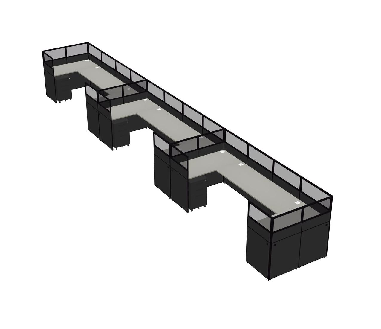 Grey Shadows U-shaped Panel System For 3 Person + Metal Mobile Drawers For 3 User(s)