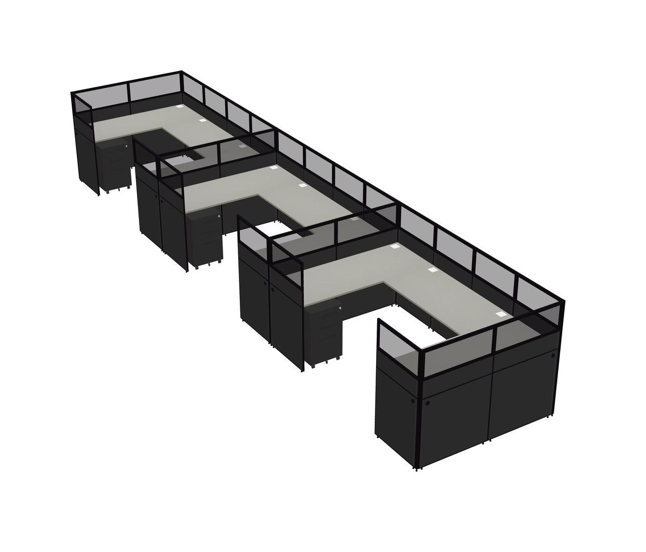 Grey Shadows U-shaped Panel System For 3 Person + Metal Mobile Drawers For 3 User(s)