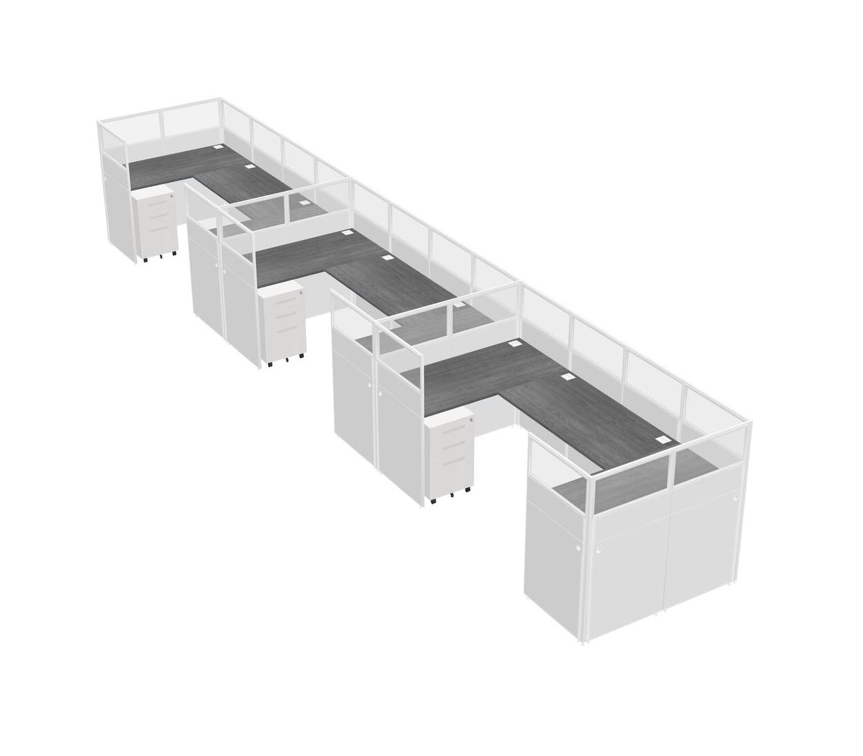 Grey U-shaped Panel System For 3 Person + Metal Mobile Drawers For 3 User(s)