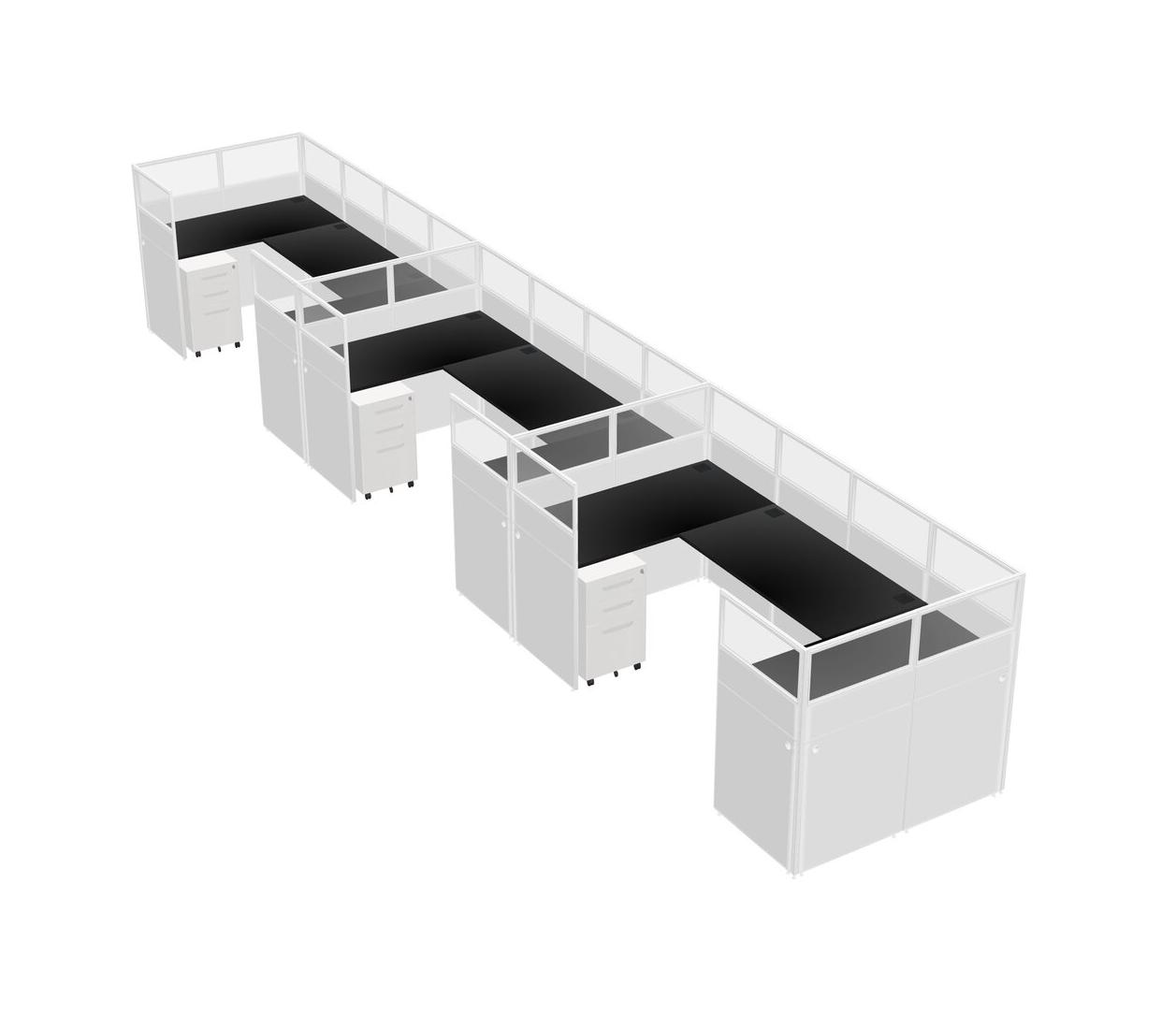 Black U-shaped Panel System For 3 Person + Metal Mobile Drawers For 3 User(s)