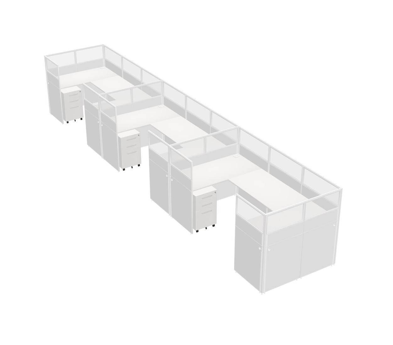 White U-shaped Panel System For 3 Person + Metal Mobile Drawers For 3 User(s)
