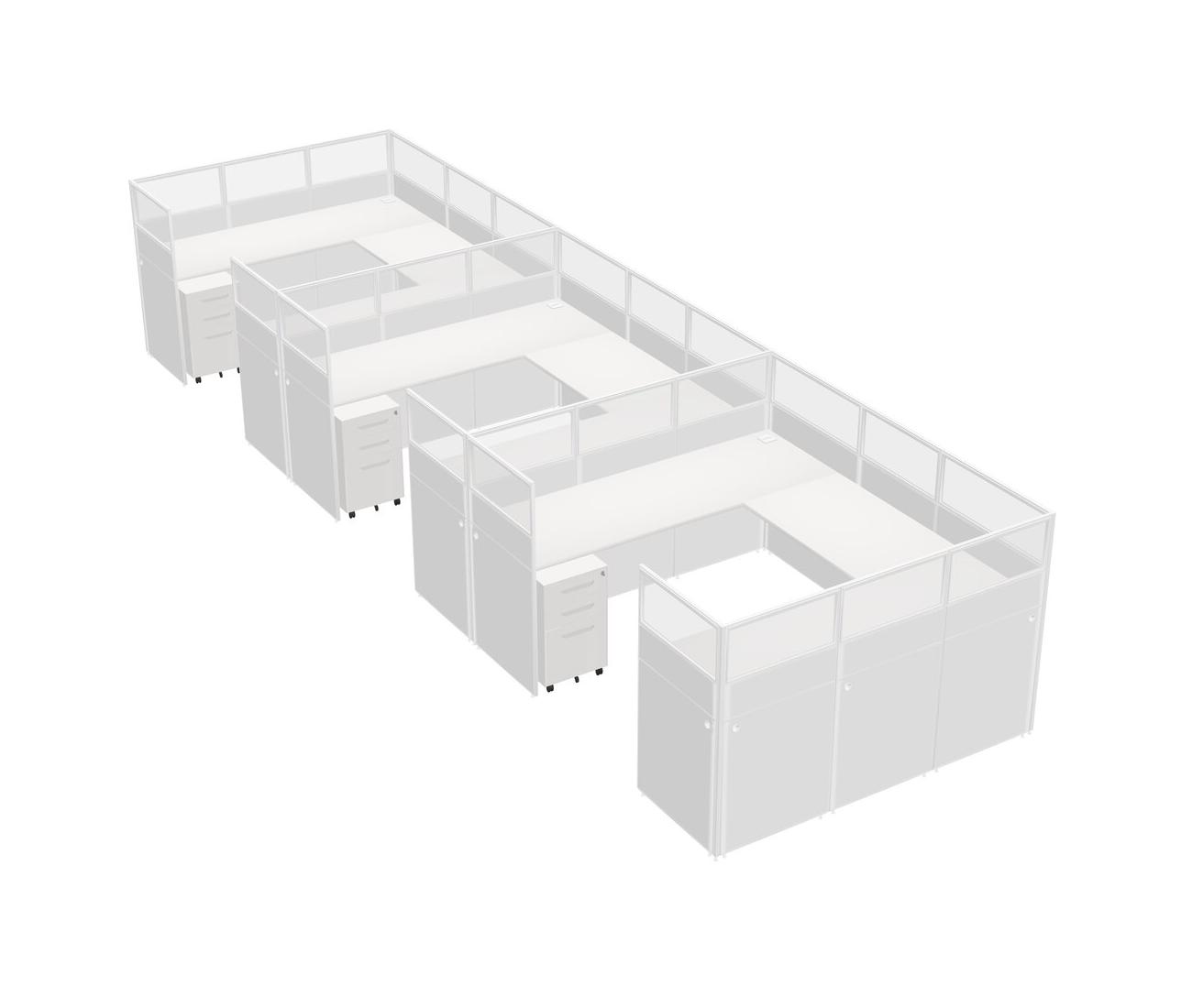 White U-shaped Panel System For 3 Person + Metal Mobile Drawers For 3 User(s)