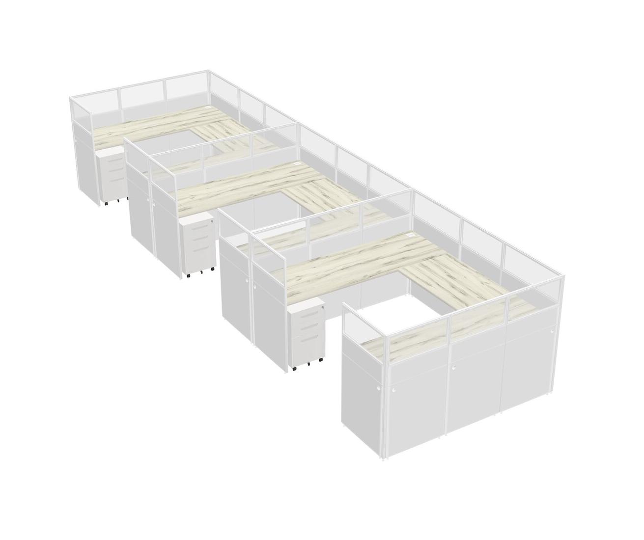 Heinne Holz U-shaped Panel System For 3 Person + Metal Mobile Drawers For 3 User(s)