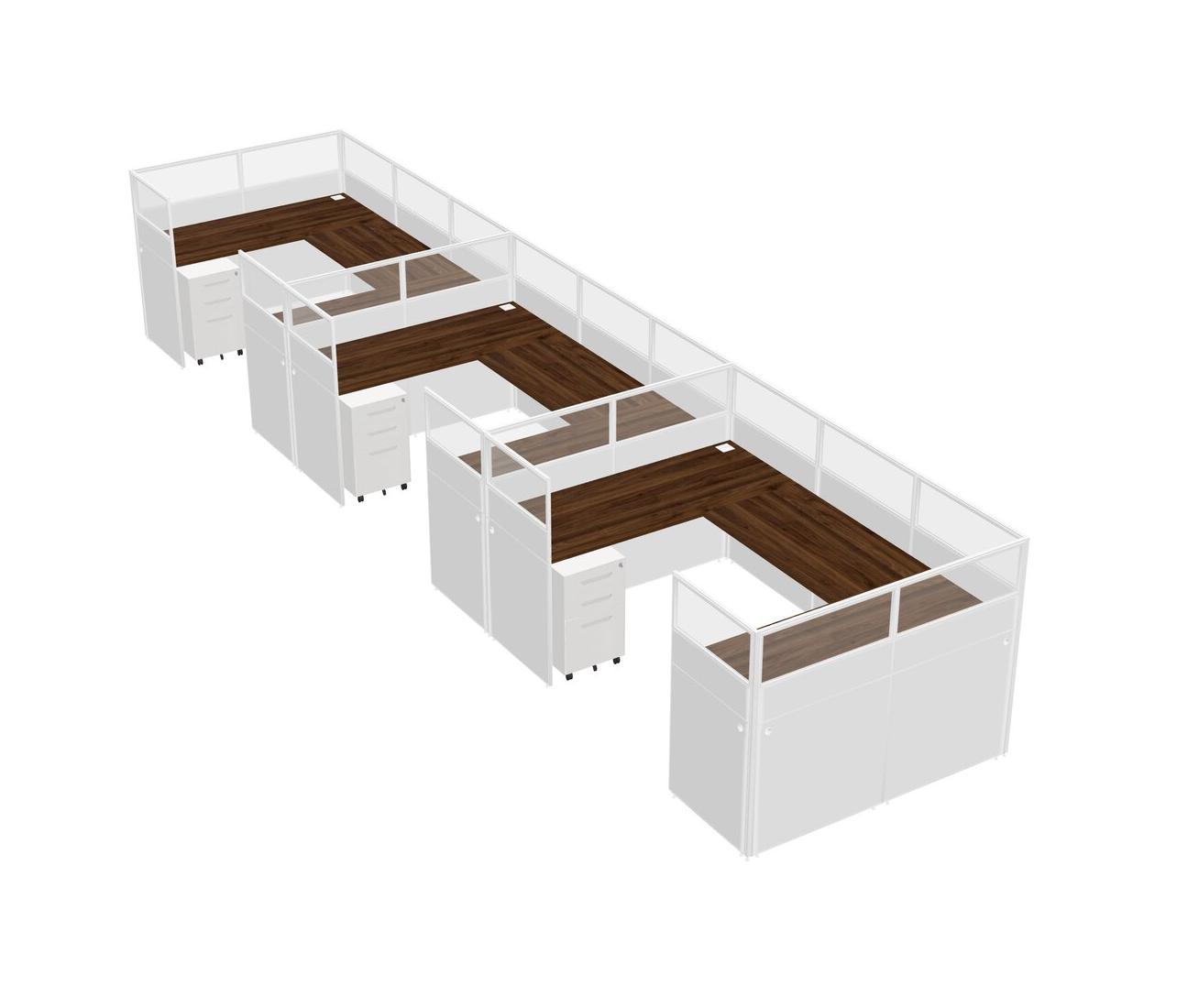 Columbia Walnut U-shaped Panel System For 3 Person + Metal Mobile Drawers For 3 User(s)