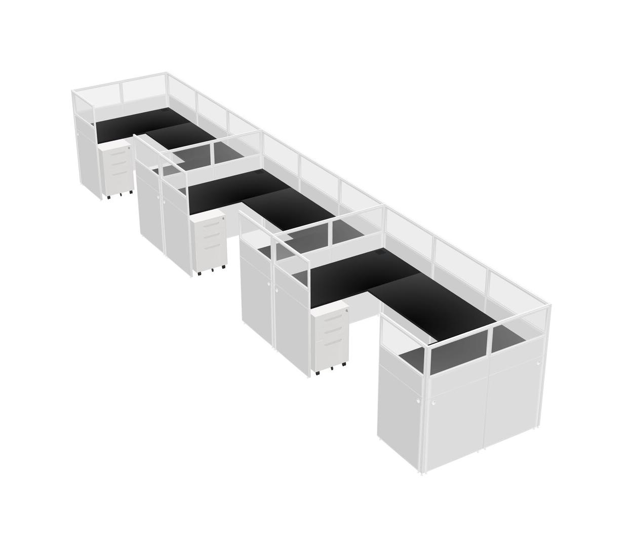 Black U-shaped Panel System For 3 Person + Metal Mobile Drawers For 3 User(s)
