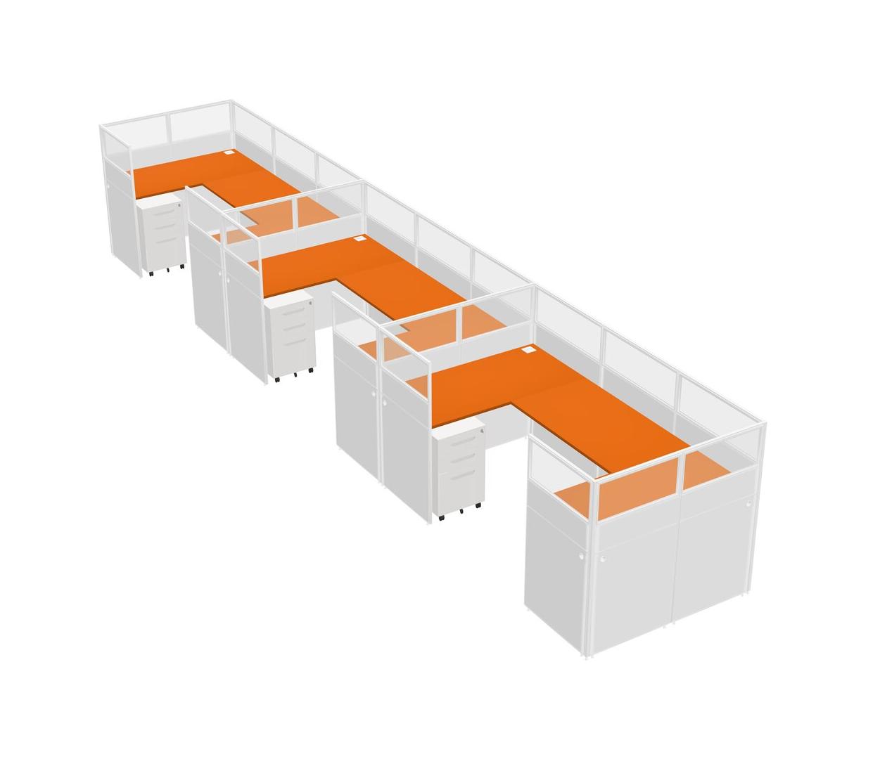 Orange U-shaped Panel System For 3 Person + Metal Mobile Drawers For 3 User(s)