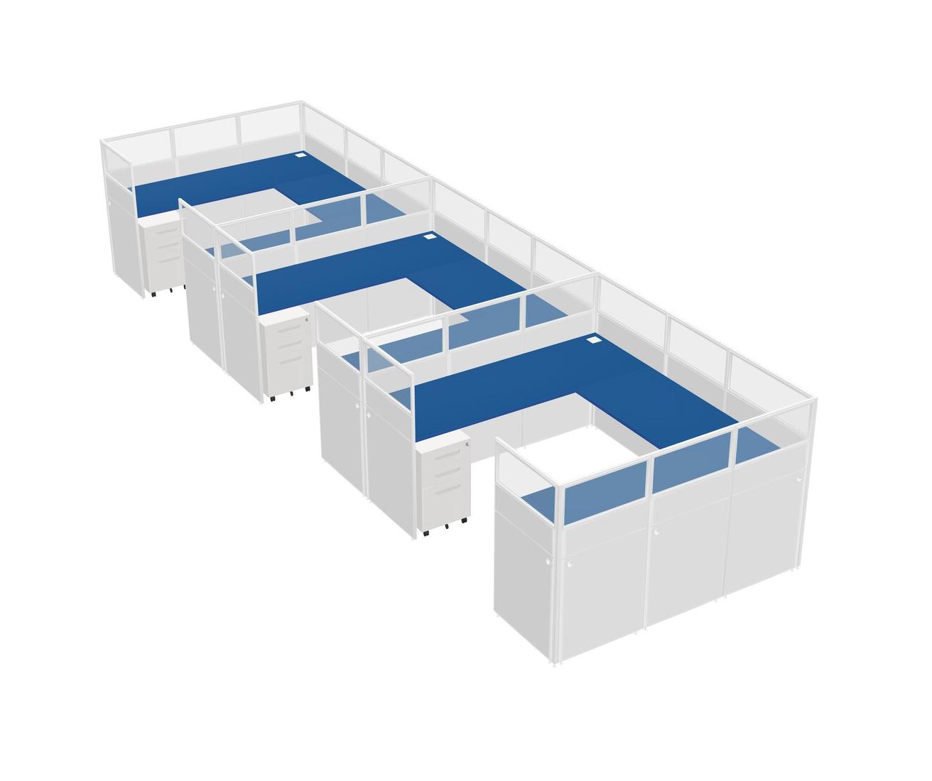 Prism Blue U-shaped Panel System For 3 Person + Metal Mobile Drawers For 3 User(s)