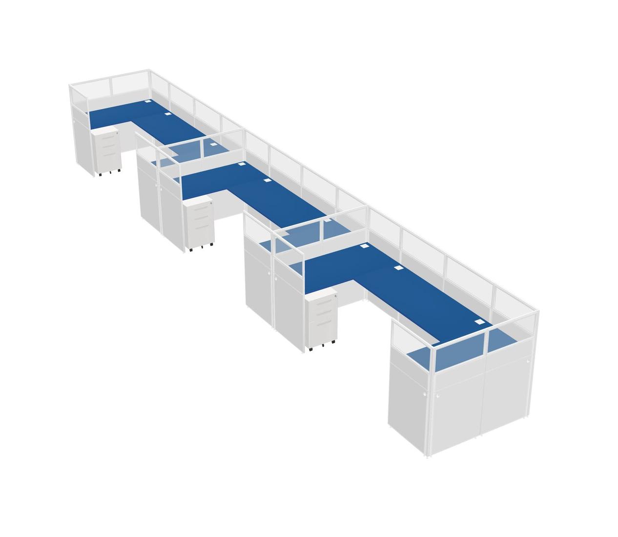 Prism Blue U-shaped Panel System For 3 Person + Metal Mobile Drawers For 3 User(s)