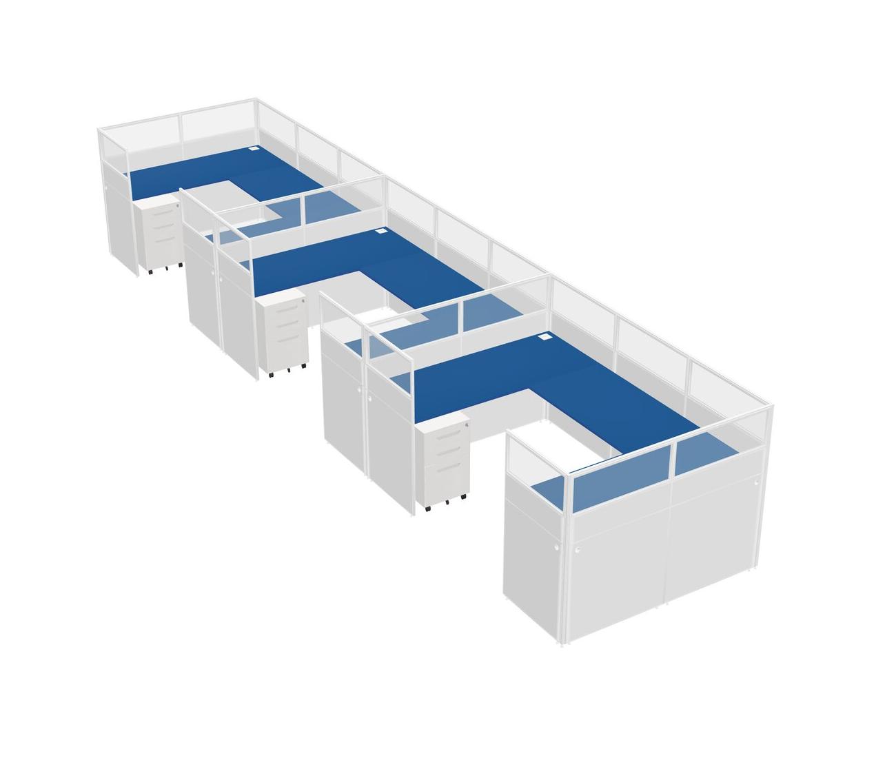 Prism Blue U-shaped Panel System For 3 Person + Metal Mobile Drawers For 3 User(s)