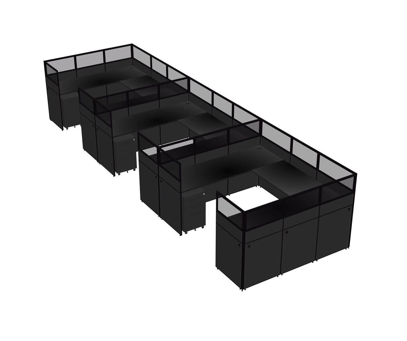 Black U-shaped Panel System For 3 Person + Metal Mobile Drawers For 3 User(s)