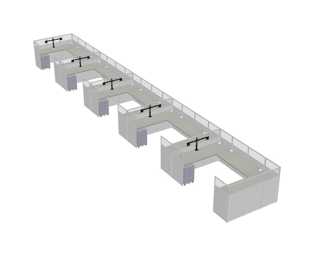 Grey Shadows U-shaped Panel System For 5 Person + Monitor Arm (double Arms) + Metal Mobile Drawers For 5 User(s)