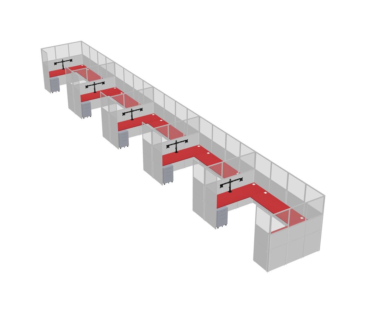 Prism Red U-shaped Panel System For 5 Person + Monitor Arm (double Arms) + Metal Mobile Drawers For 5 User(s)