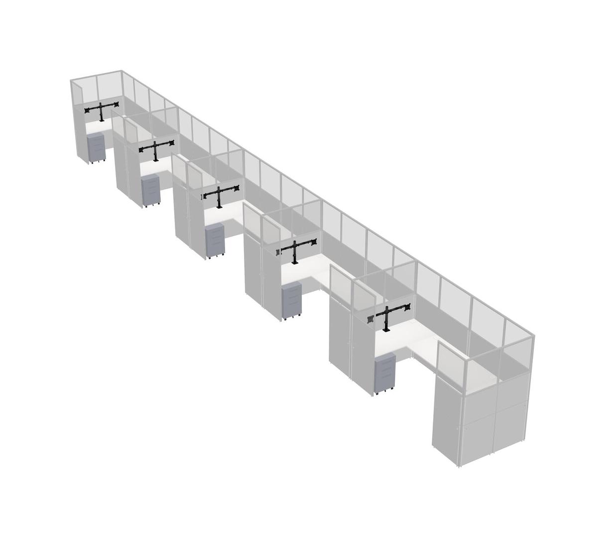 White U-shaped Panel System For 5 Person + Monitor Arm (double Arms) + Metal Mobile Drawers For 5 User(s)