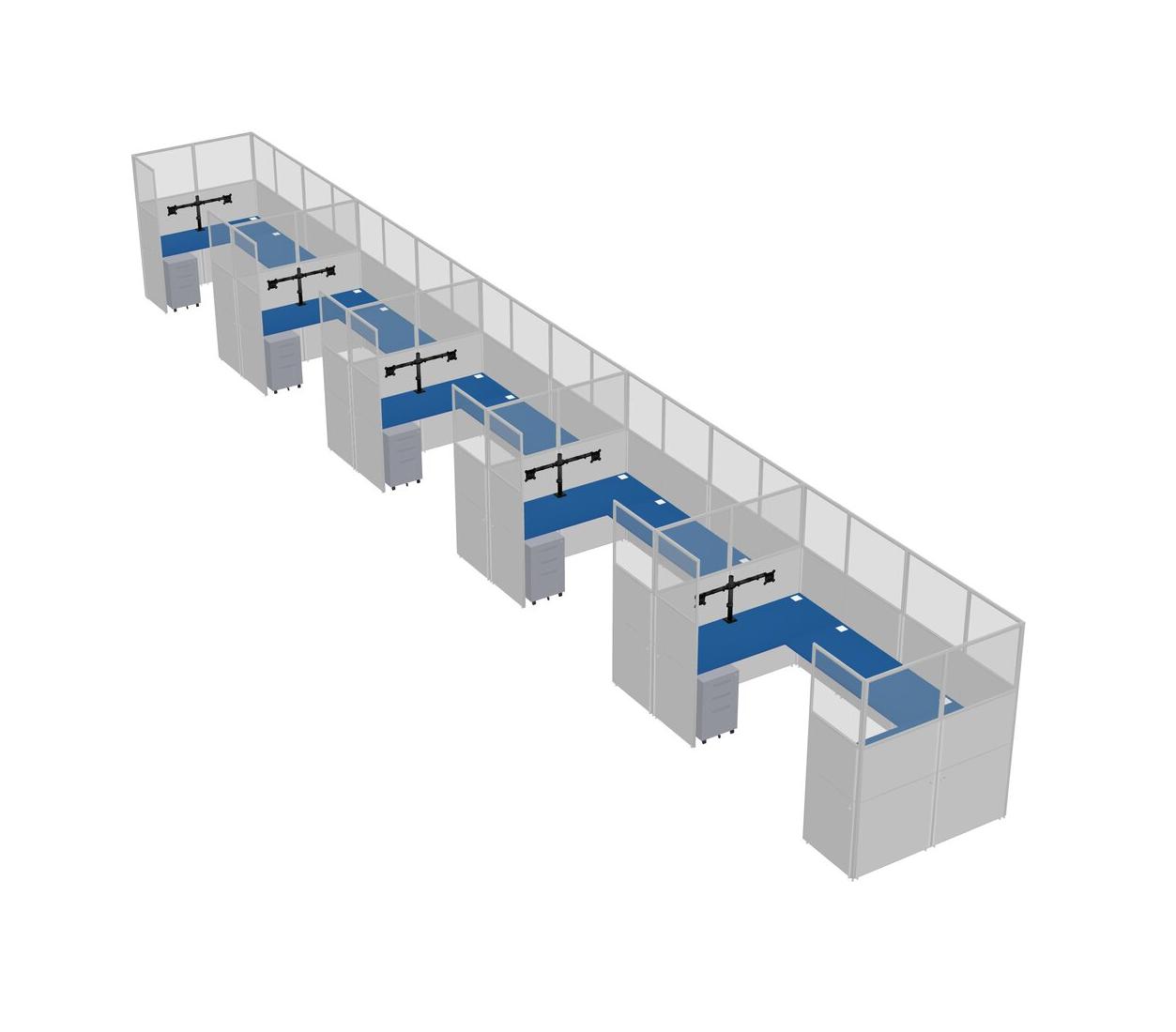 Prism Blue U-shaped Panel System For 5 Person + Monitor Arm (double Arms) + Metal Mobile Drawers For 5 User(s)