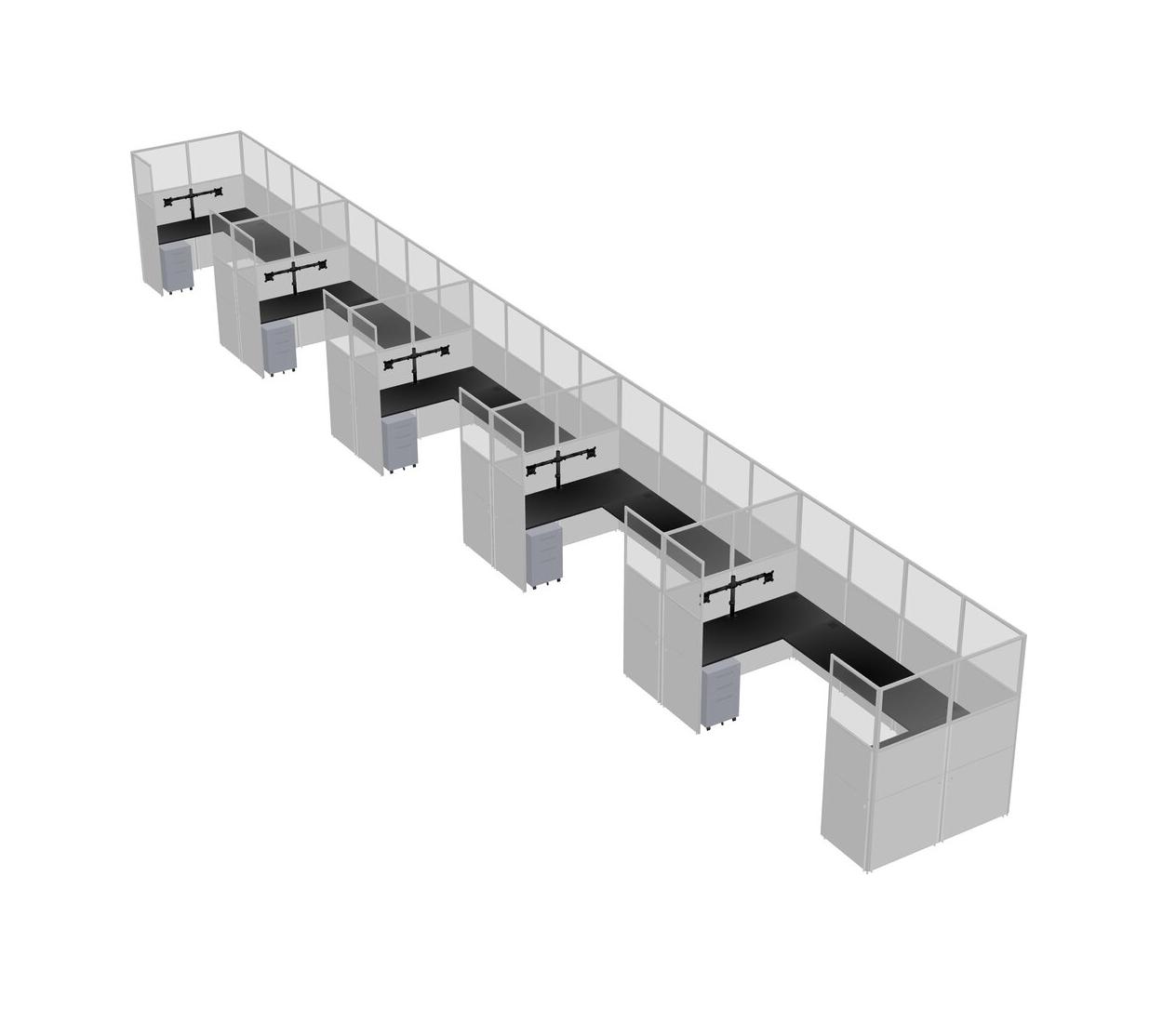 Black U-shaped Panel System For 5 Person + Monitor Arm (double Arms) + Metal Mobile Drawers For 5 User(s)