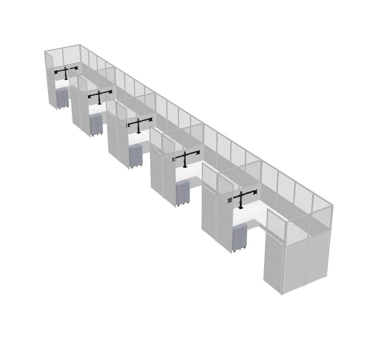White U-shaped Panel System For 5 Person + Monitor Arm (double Arms) + Metal Mobile Drawers For 5 User(s)