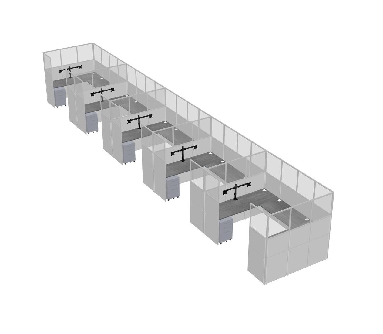 Grey U-shaped Panel System For 5 Person + Monitor Arm (double Arms) + Metal Mobile Drawers For 5 User(s)
