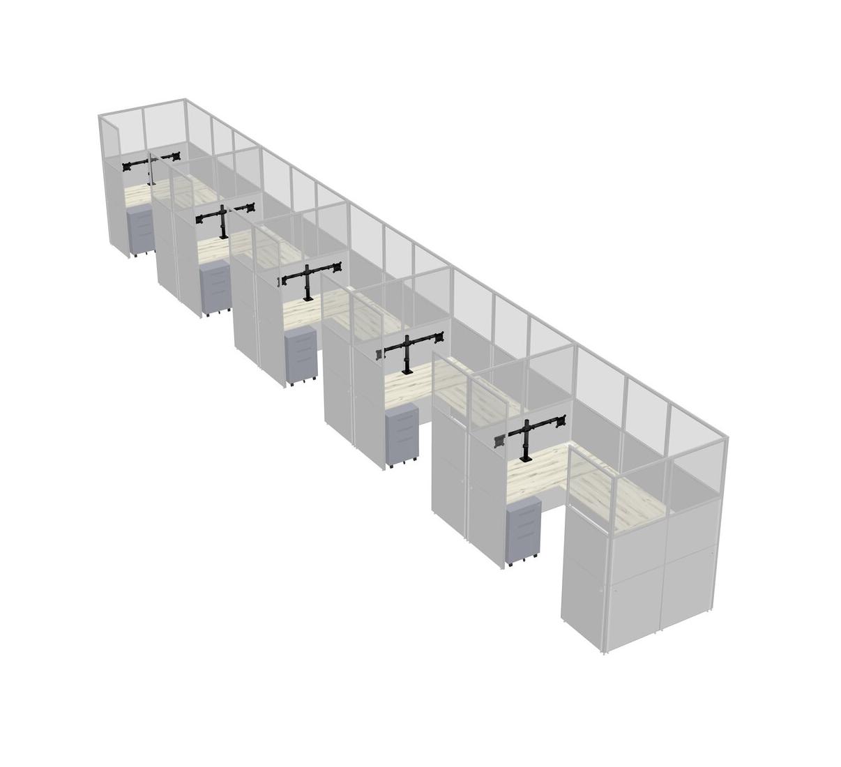 Heinne Holz U-shaped Panel System For 5 Person + Monitor Arm (double Arms) + Metal Mobile Drawers For 5 User(s)