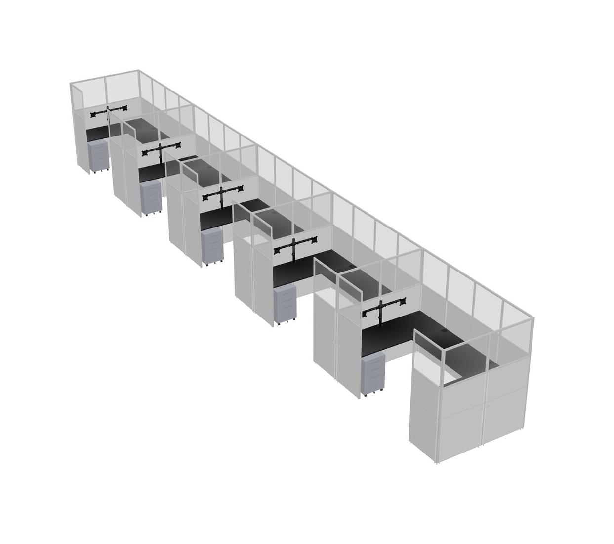 Black U-shaped Panel System For 5 Person + Monitor Arm (double Arms) + Metal Mobile Drawers For 5 User(s)