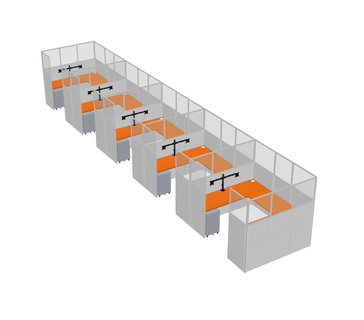 Orange U-shaped Panel System For 5 Person + Monitor Arm (double Arms) + Metal Mobile Drawers For 5 User(s)