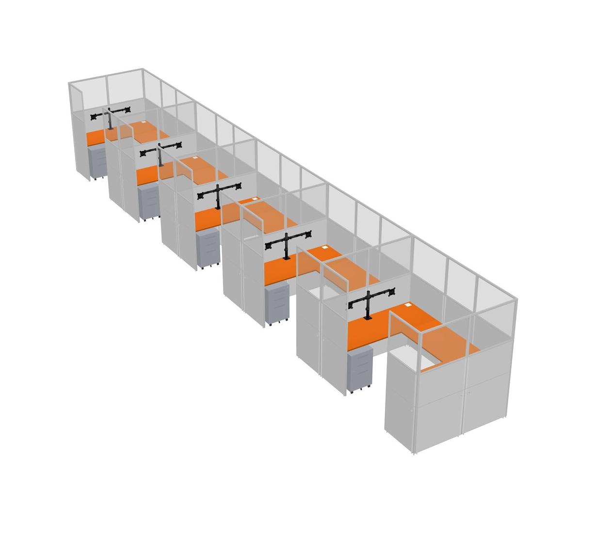 Orange U-shaped Panel System For 5 Person + Monitor Arm (double Arms) + Metal Mobile Drawers For 5 User(s)