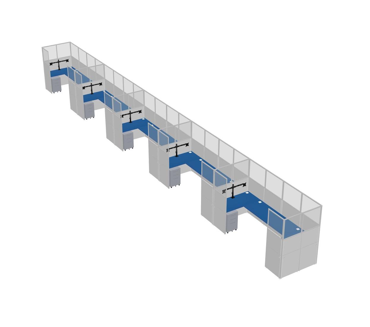 Prism Blue U-shaped Panel System For 5 Person + Monitor Arm (double Arms) + Metal Mobile Drawers For 5 User(s)