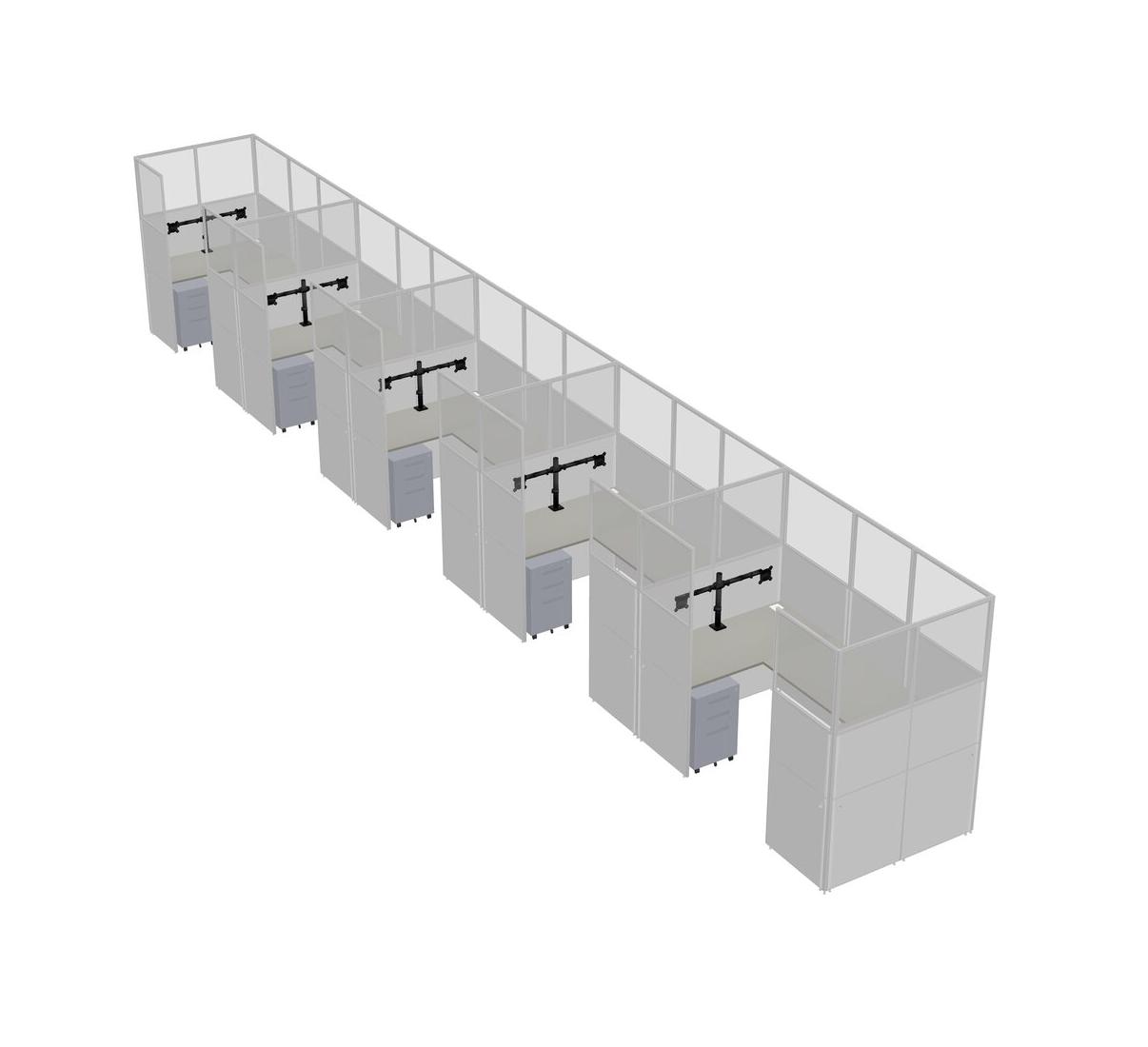 Grey Shadows U-shaped Panel System For 5 Person + Monitor Arm (double Arms) + Metal Mobile Drawers For 5 User(s)