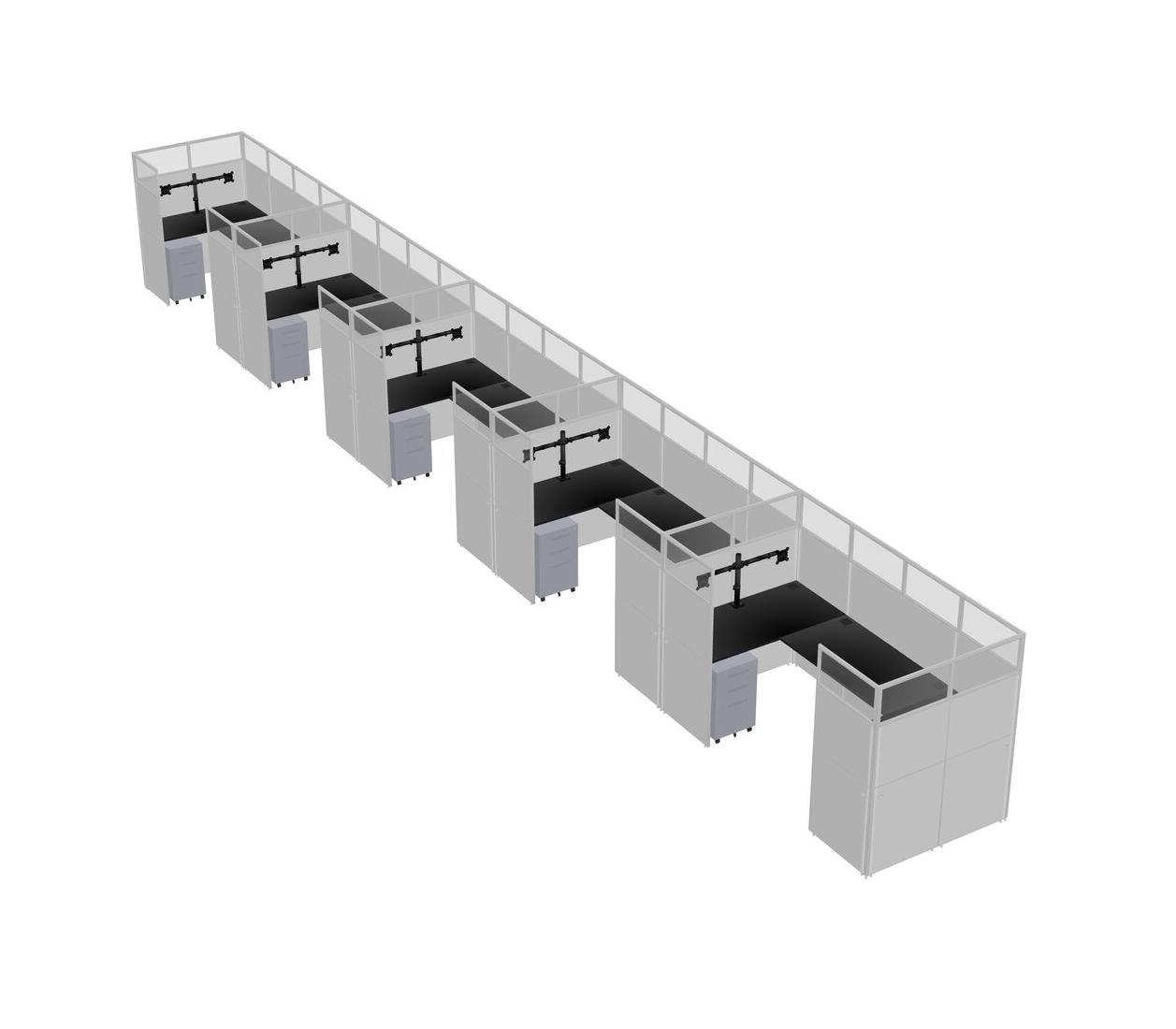 Black U-shaped Panel System For 5 Person + Monitor Arm (double Arms) + Metal Mobile Drawers For 5 User(s)