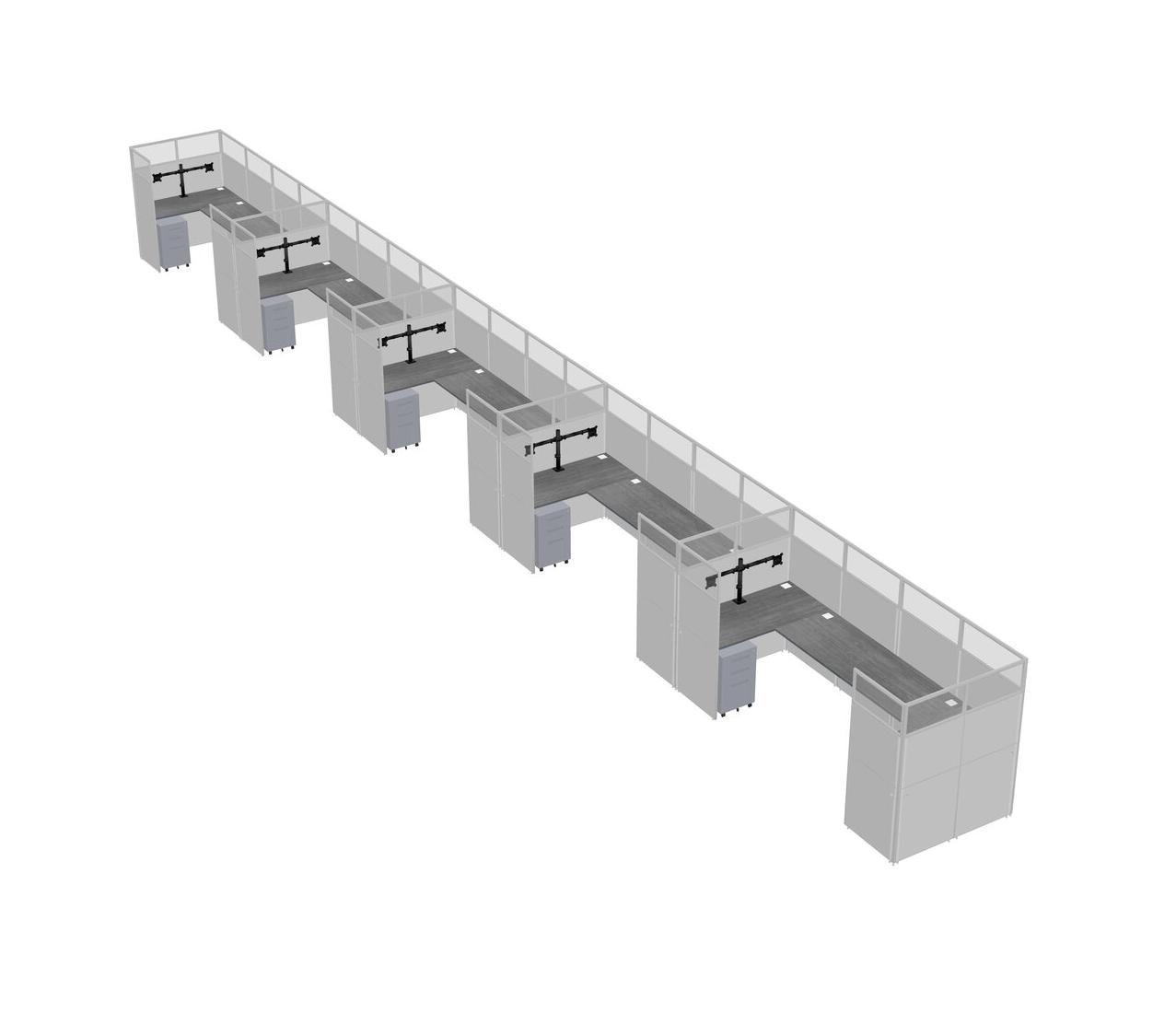Grey U-shaped Panel System For 5 Person + Monitor Arm (double Arms) + Metal Mobile Drawers For 5 User(s)