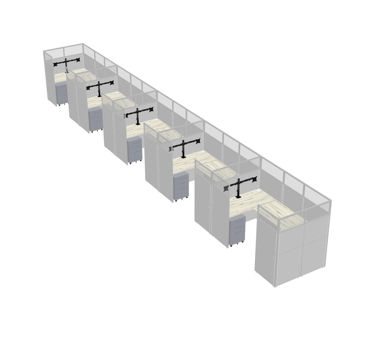 Heinne Holz U-shaped Panel System For 5 Person + Monitor Arm (double Arms) + Metal Mobile Drawers For 5 User(s)