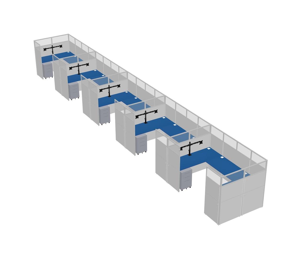 Prism Blue U-shaped Panel System For 5 Person + Monitor Arm (double Arms) + Metal Mobile Drawers For 5 User(s)