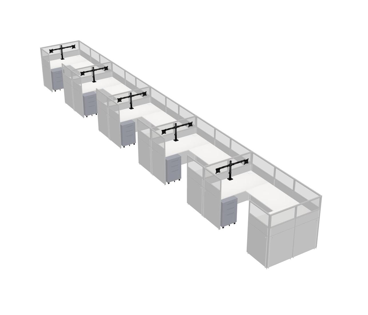 White U-shaped Panel System For 5 Person + Monitor Arm (double Arms) + Metal Mobile Drawers For 5 User(s)