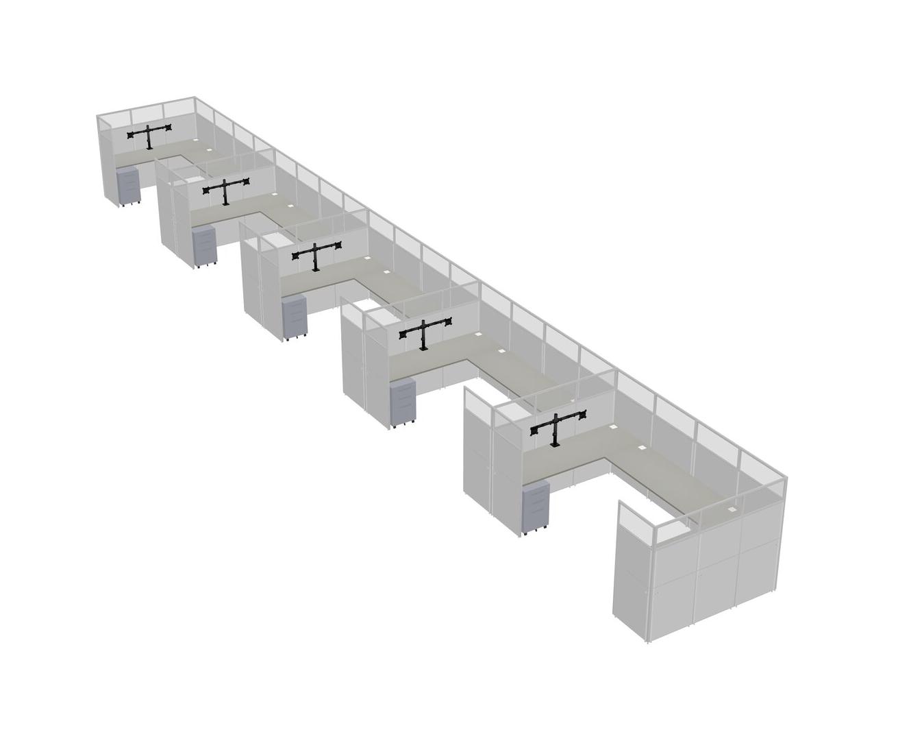 Grey Shadows U-shaped Panel System For 5 Person + Monitor Arm (double Arms) + Metal Mobile Drawers For 5 User(s)