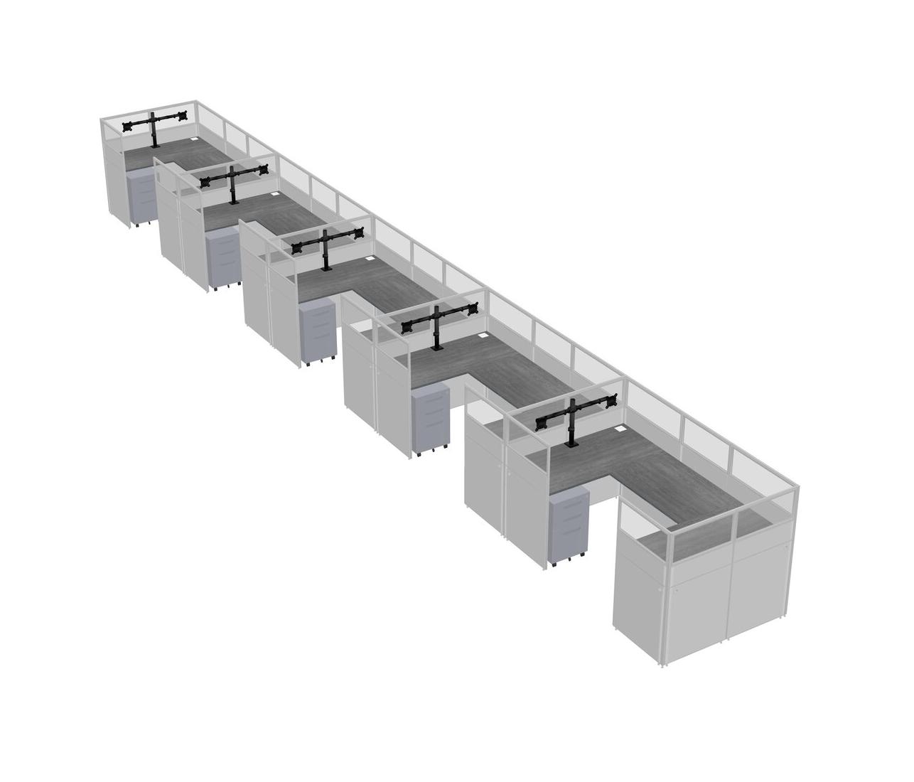 Grey U-shaped Panel System For 5 Person + Monitor Arm (double Arms) + Metal Mobile Drawers For 5 User(s)