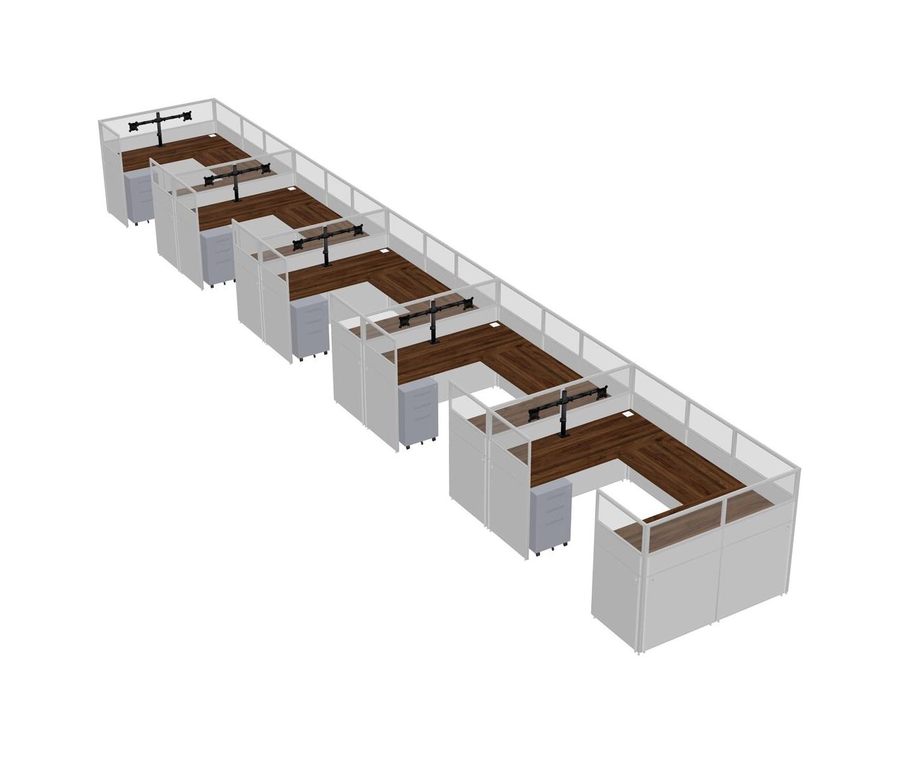 Columbia Walnut U-shaped Panel System For 5 Person + Monitor Arm (double Arms) + Metal Mobile Drawers For 5 User(s)