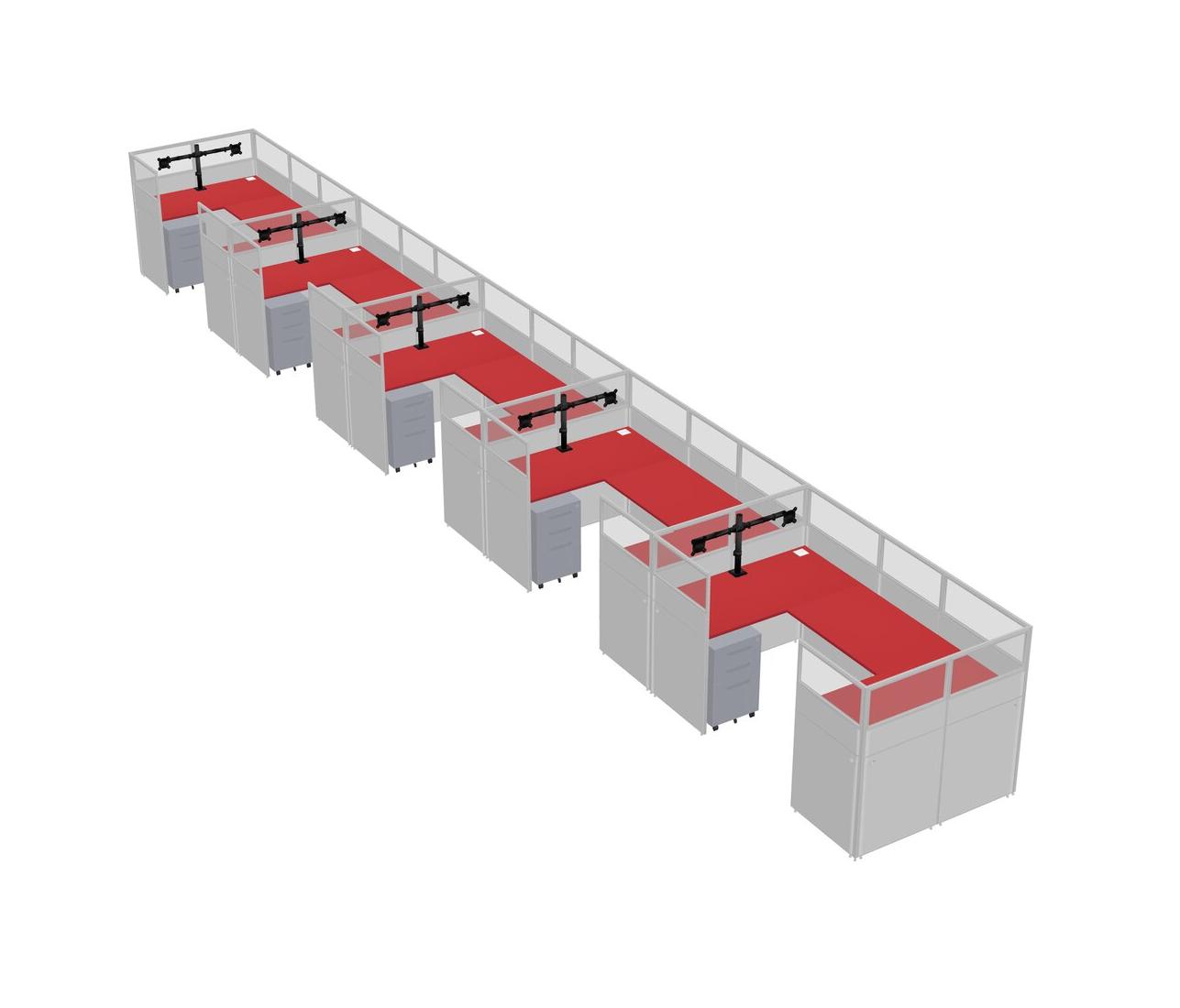 Prism Red U-shaped Panel System For 5 Person + Monitor Arm (double Arms) + Metal Mobile Drawers For 5 User(s)