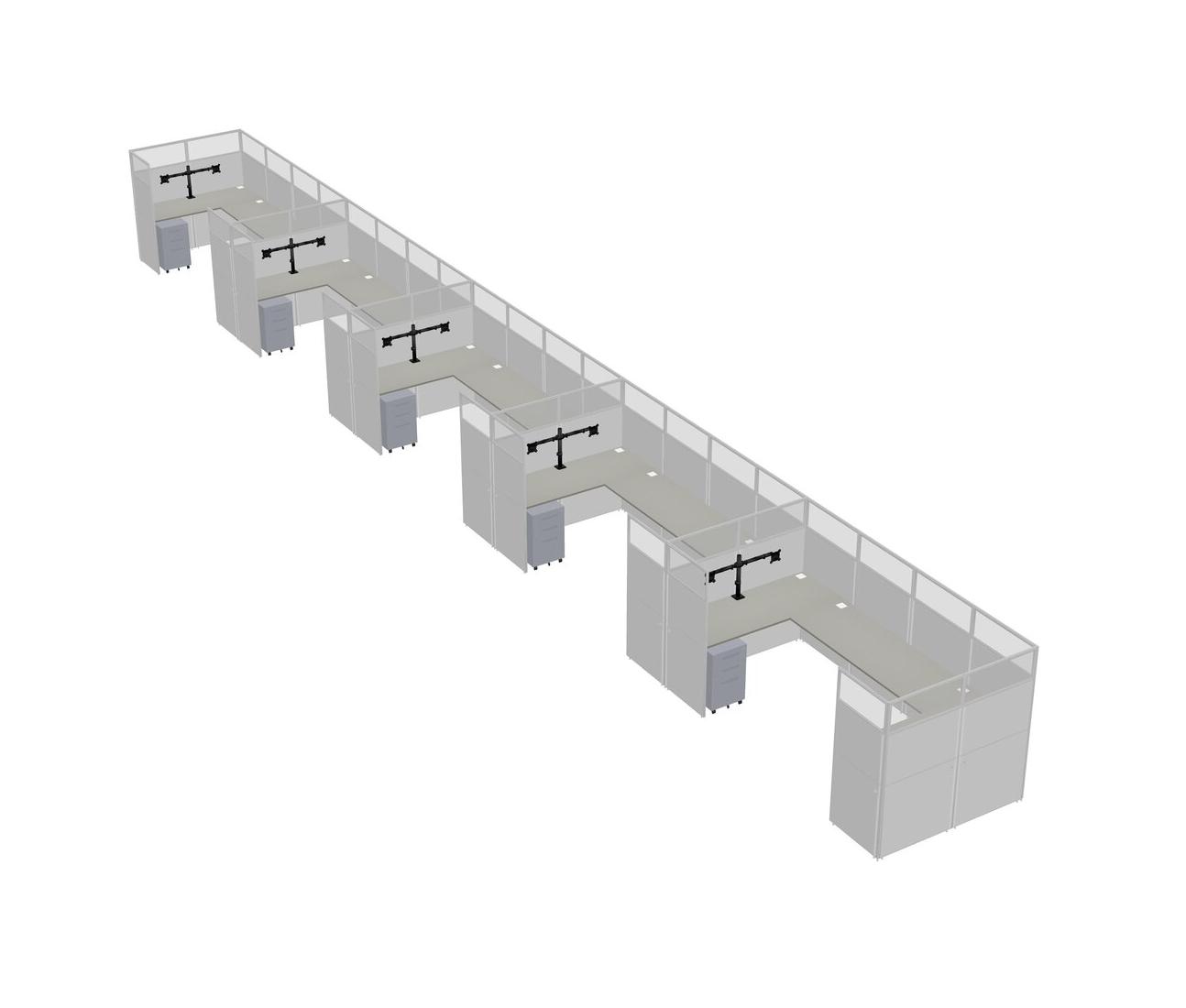 Grey Shadows U-shaped Panel System For 5 Person + Monitor Arm (double Arms) + Metal Mobile Drawers For 5 User(s)