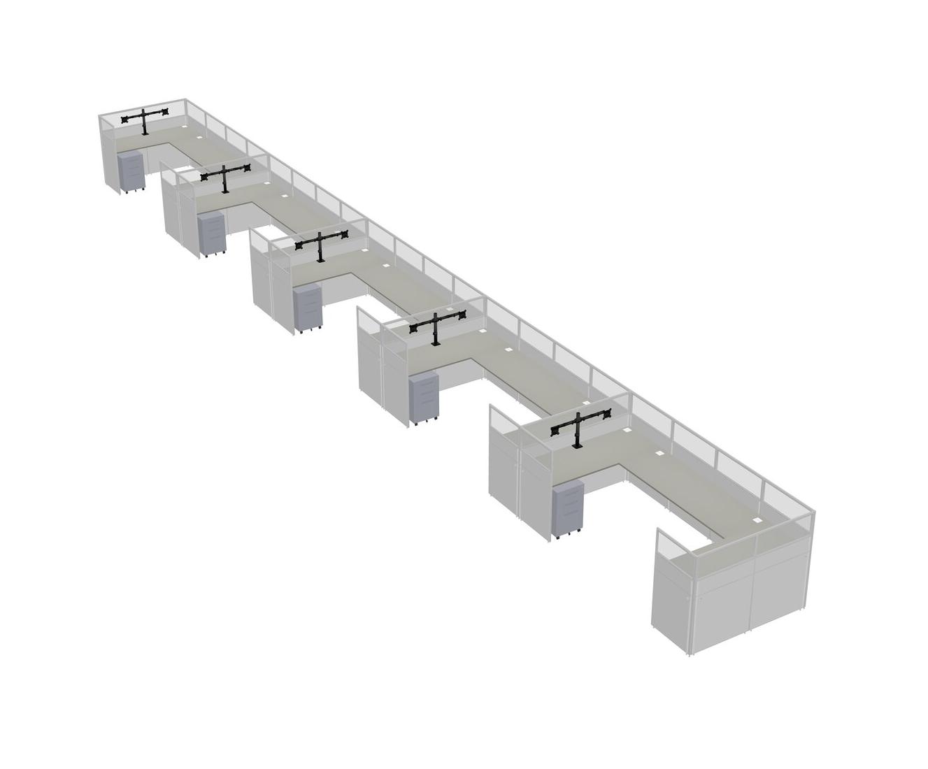 Grey Shadows U-shaped Panel System For 5 Person + Monitor Arm (double Arms) + Metal Mobile Drawers For 5 User(s)