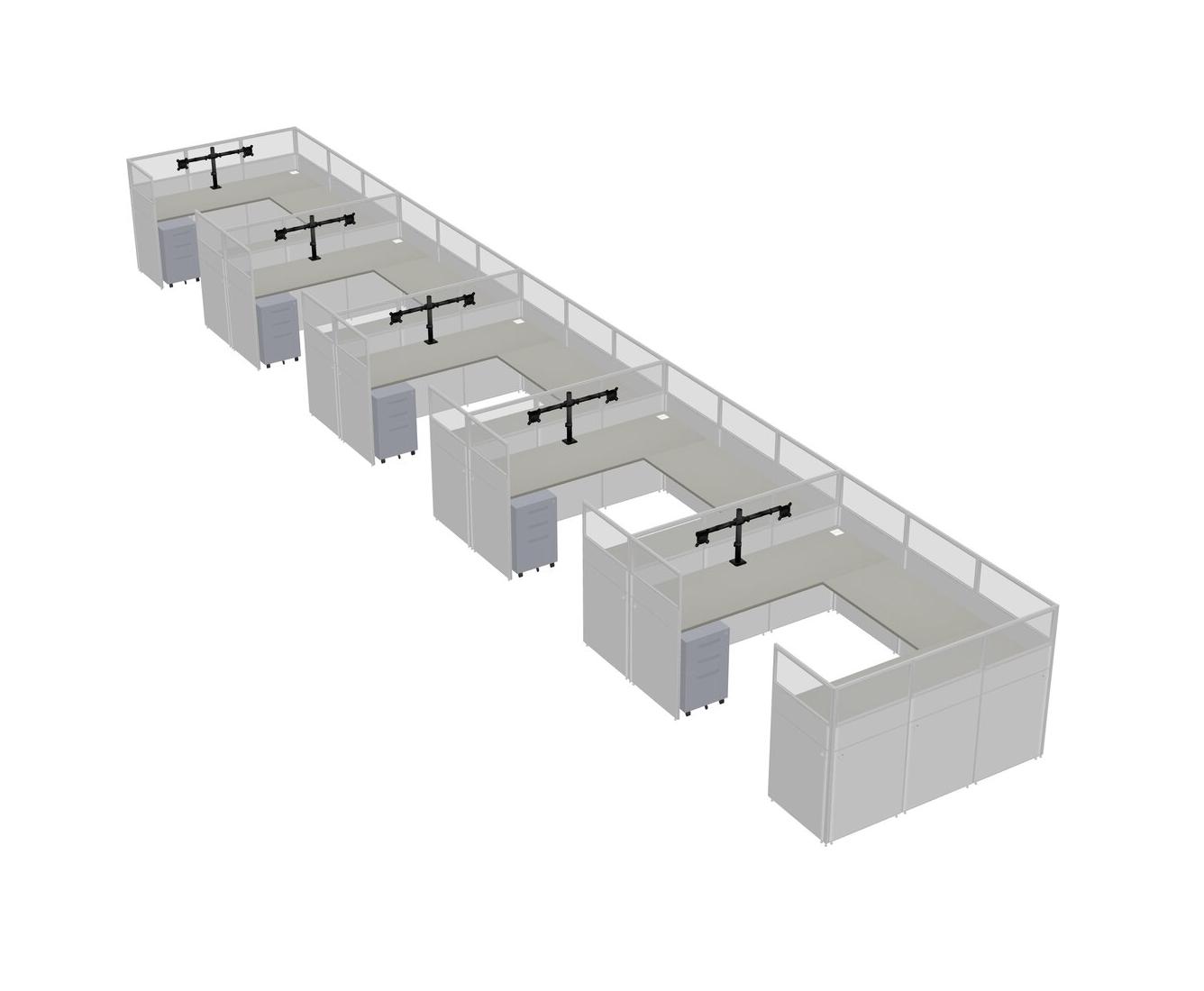 Grey Shadows U-shaped Panel System For 5 Person + Monitor Arm (double Arms) + Metal Mobile Drawers For 5 User(s)