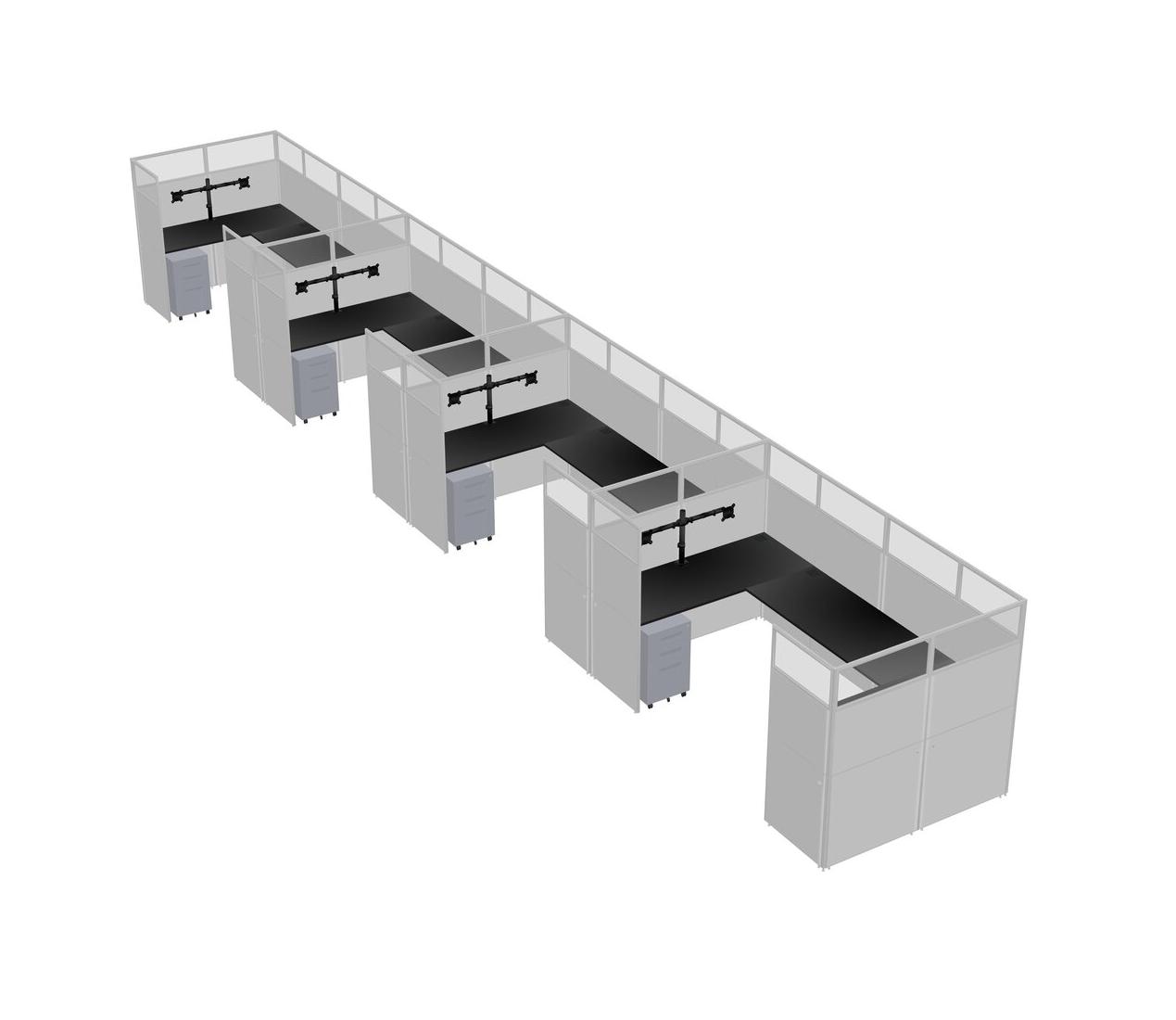 Black U-shaped Panel System For 4 Person + Monitor Arm (double Arms) + Metal Mobile Drawers For 4 User(s)