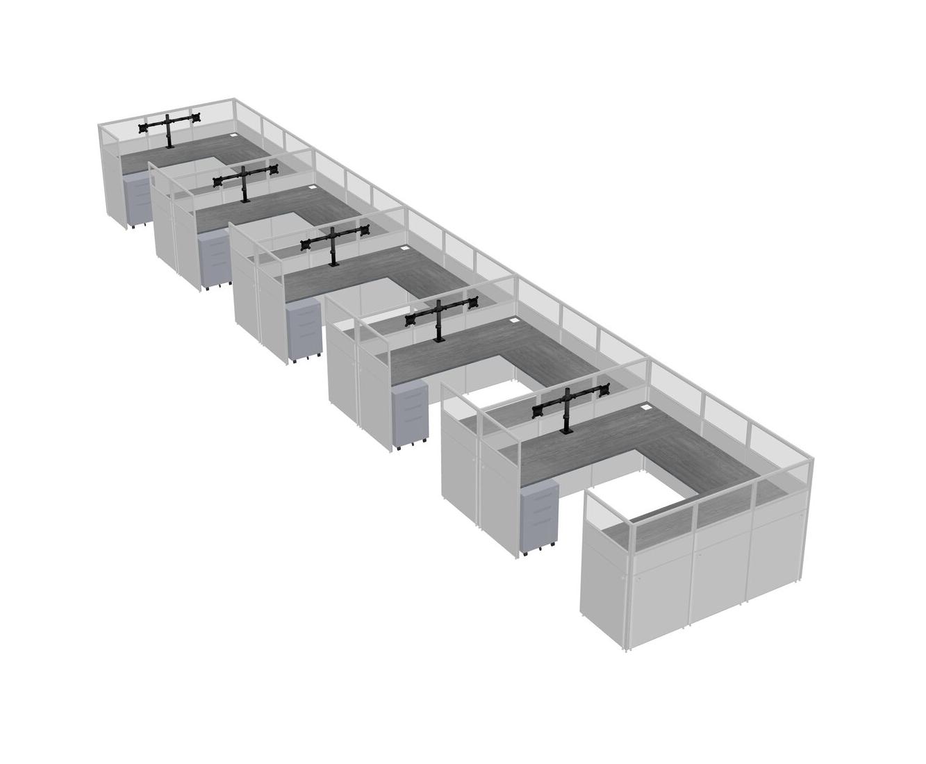 Grey U-shaped Panel System For 5 Person + Monitor Arm (double Arms) + Metal Mobile Drawers For 5 User(s)